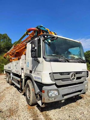 Beyaz ve turuncu Reprodüktör Kullanılmış Beton Boom Pompa Kamyonu 2014 yılında 6 kollu Benz Zoomlion 49m |